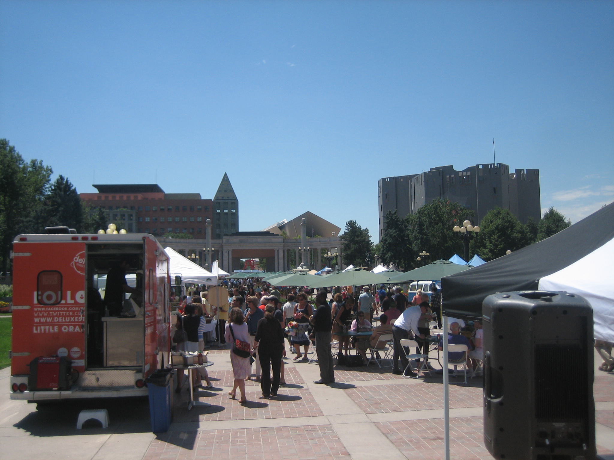 Events FeaturedCivic Center Eats July 27, 2010July 27, 2010 shelly The fun in the sun continues, peeps! The trucks and carts are out in force today at the weekly Civic Center Eats event in Civic Center Park.